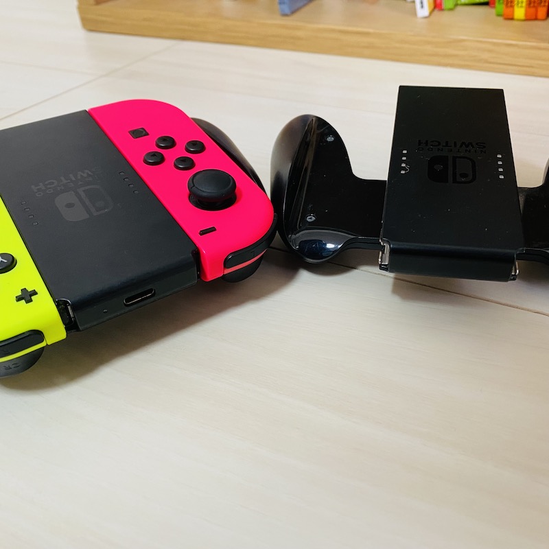 ただ、4歳の次男もマイクラをやるようになったので新たにグリップを購入するときに、充電グリップを選びました。