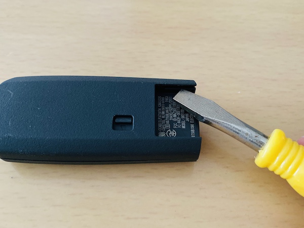 スマートキー本体の外側溝になっている部分をマイナスドライバーで開けます。