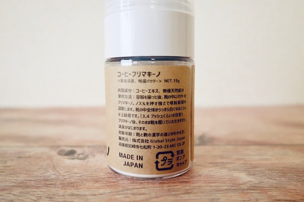 コーヒーフリマキーノは靴のイヤな臭いを消してくれる消臭パウダーです。