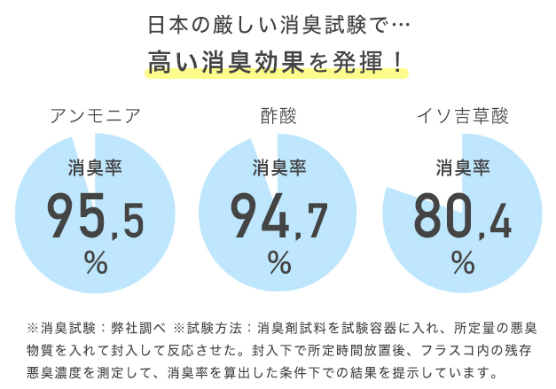 ニオイをニオイで誤魔化すのではなく、菌そのものを抑制してくれるので、抜群に消臭します。。