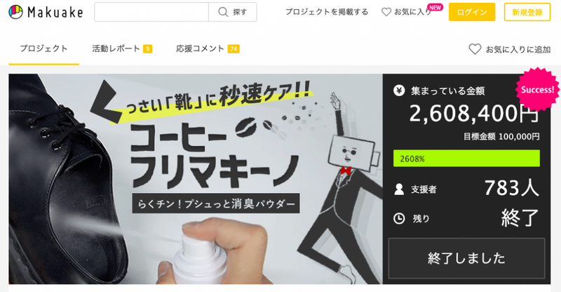 コーヒーフリマキーノは今年の2月に発売されたばかりの消臭パウダーで、クラウドファンディング「Makuake」から生まれた商品です。