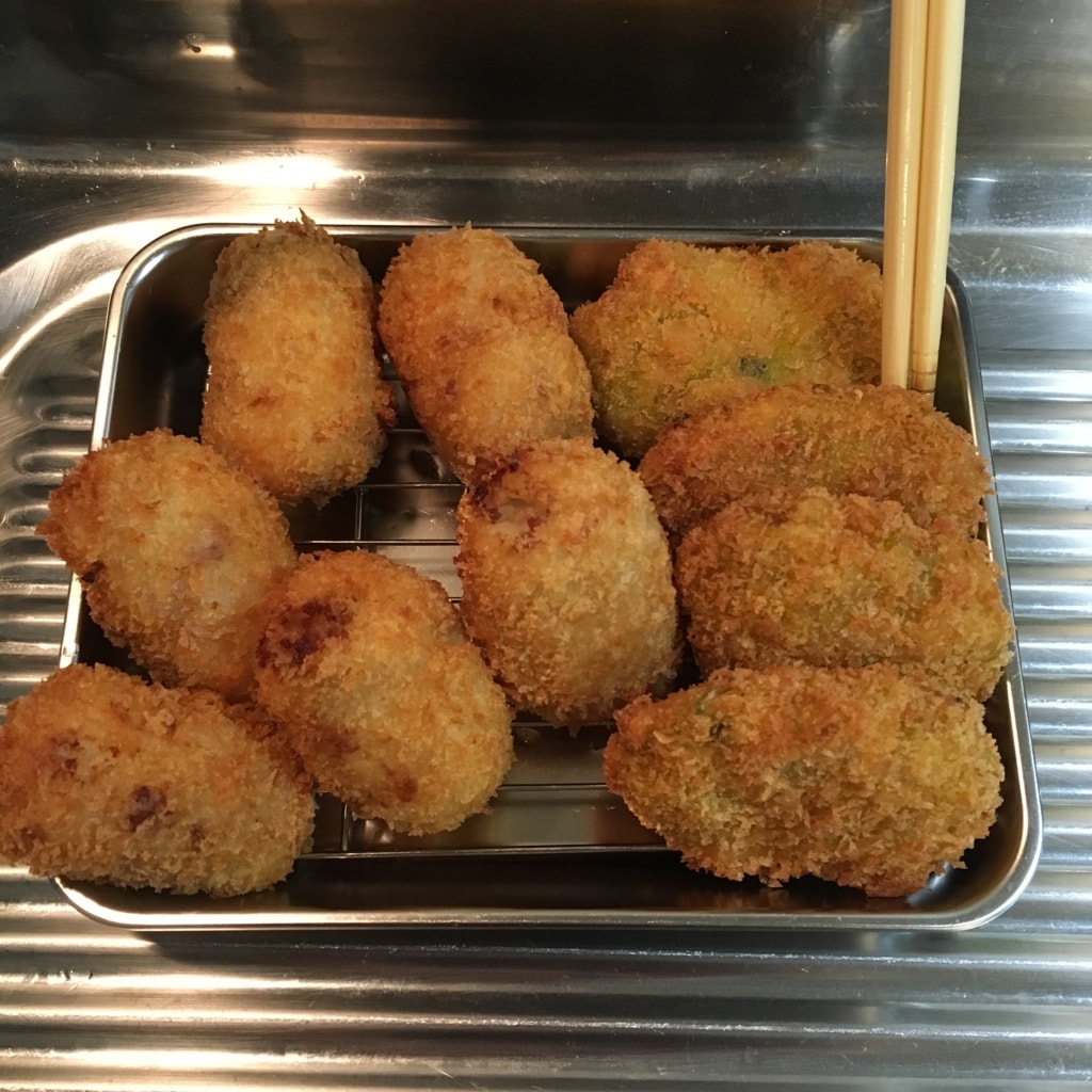 あとは普通のコロッケ作りと同じように、170度2分弱くらい揚げて終了です。