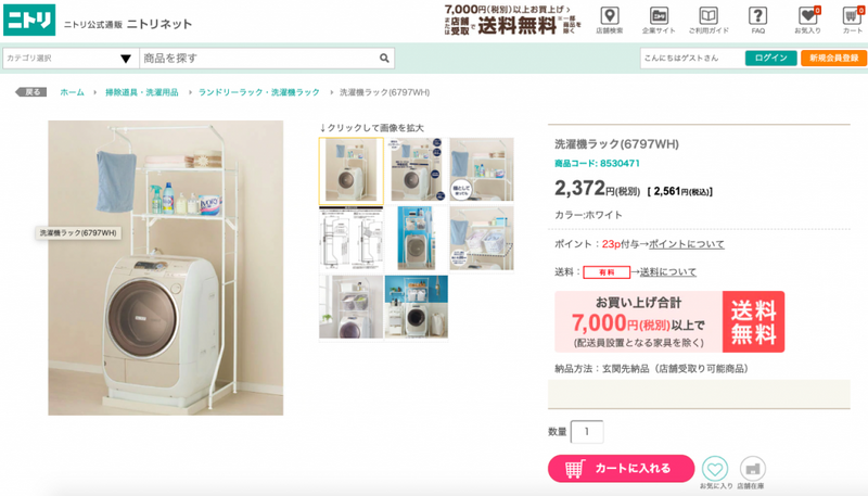 ニトリのランドリーラック(6797WH)|サイズと価格