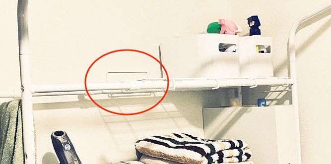 ニトリのランドリーラックにはストッパーが2つあり(写真の赤いところ)タオルなどを出し入れする時のグラグラ防止になっています。