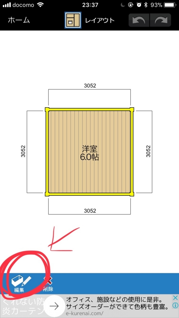 そして「編集」をクリック。ここから増築して間取りを完成させていきます。