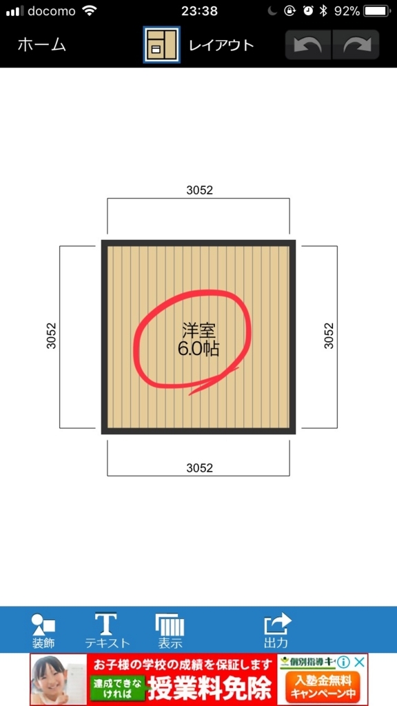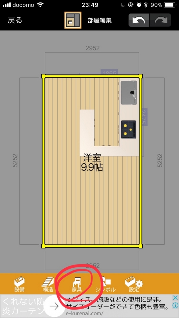 それでも良かったのですが、ちゃんとした間取り図を使いたいと思い、間取り図が作れるアプリがあるか探してみたところ、素人でもちゃんとした間取り図を作れそうなアプリがあったので作ってみるといい感じ。