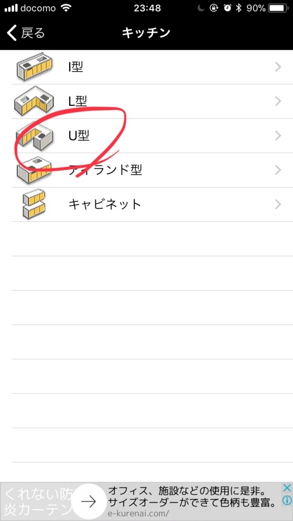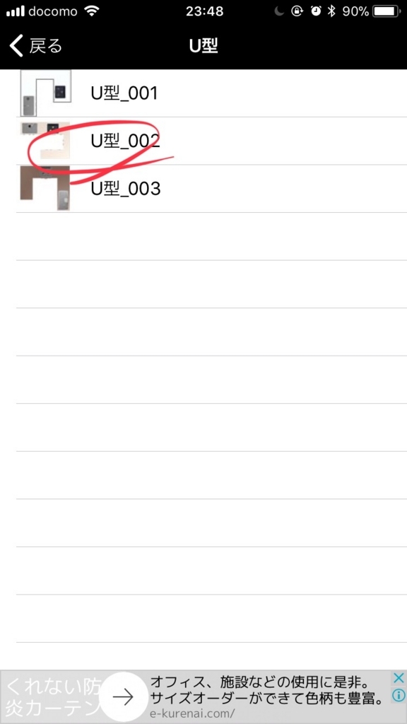 U型のキッチンは3種類から選択できるようです。(*設備によって種類の数は違います)