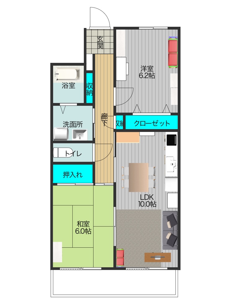 インテリアは、設備と家具を自分の好きな場所に置くことができます。