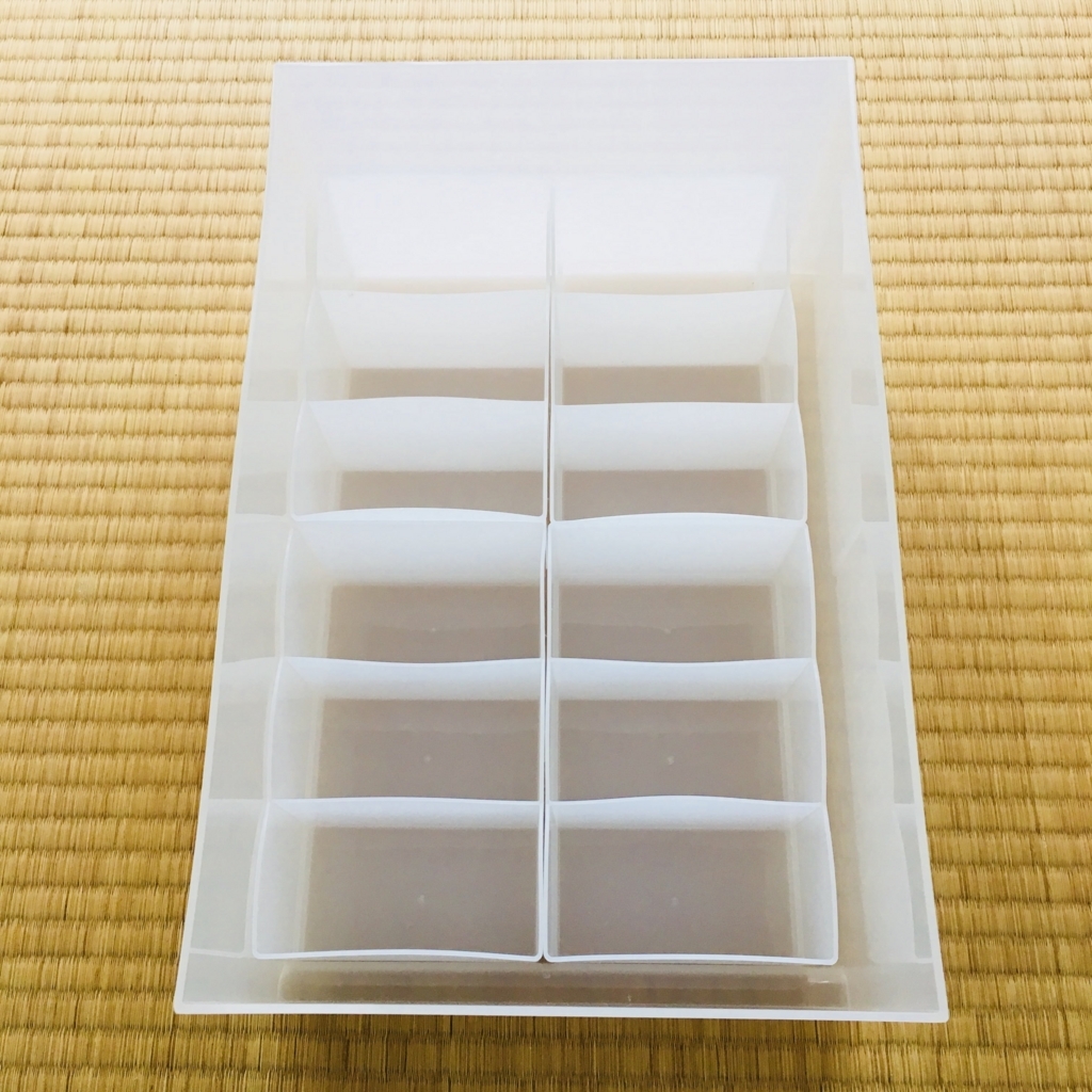 セリアには、仕切りが移動できるタイプのボックスもありますが、こちらは仕切りが移動できないということが好みです。