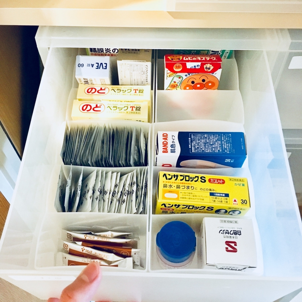 仕切りができたことで、引出しを開けるととっても見やすく、薬が探しやすいです。