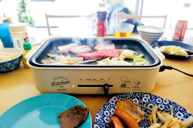 ホットプレートはブルーノのスヌーピーコラボ。可愛くてお気に入りです。