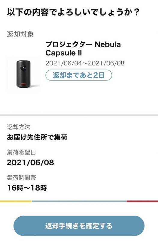 - kikitoサイトから返却方法を選ぶ(集荷を選んで確定する)