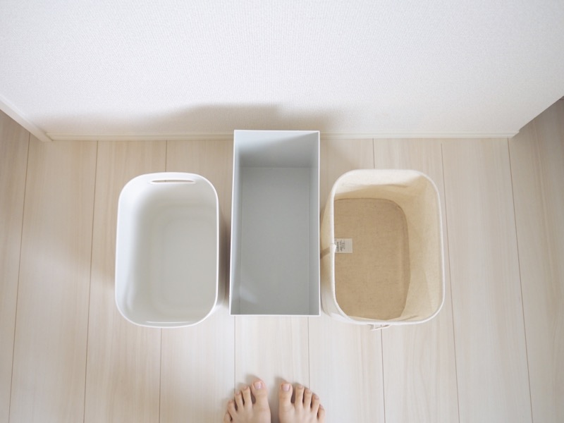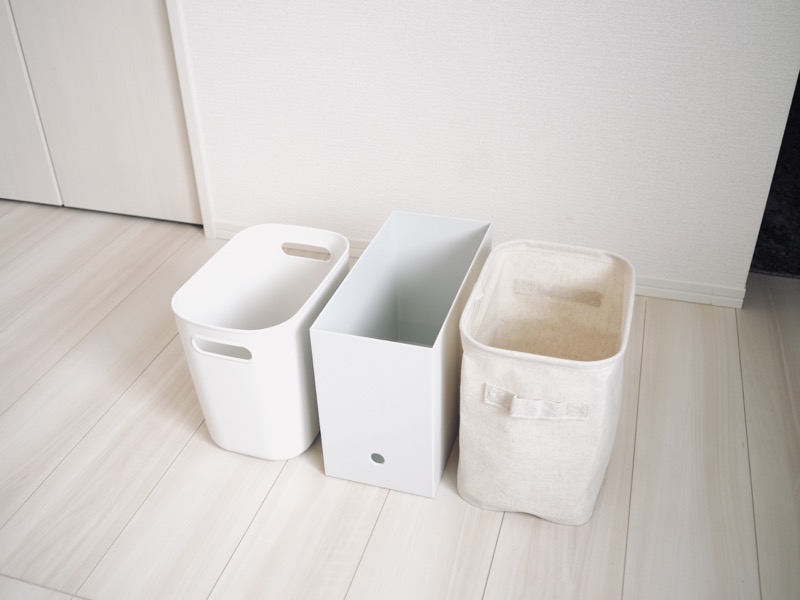 無印良品はさまざまな素材の収納アイテムが揃っていて、サイズも微妙に違います。