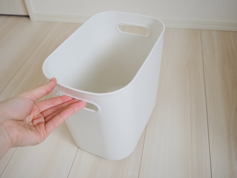 収納用品としてはちょっと深さがあるタイプですが、深いわりには高い場所に収納しても取り出しやすいです。