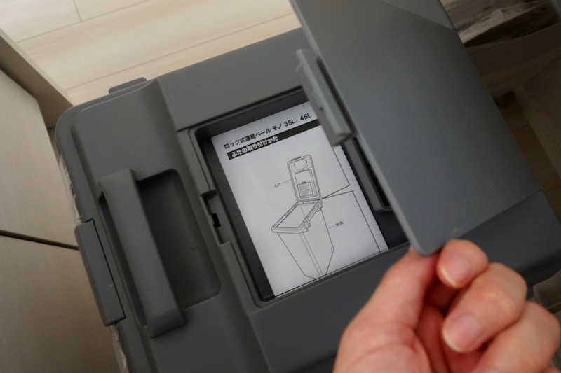 ▼蓋の上にゴミ袋を収納するスペースがあるけど、こちらは使ってないです。(*ゴミ袋収納の引き出しが隣にあるので)