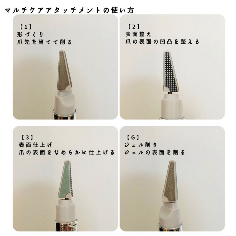 ネイルケアに使うアタッチメントは3つ。