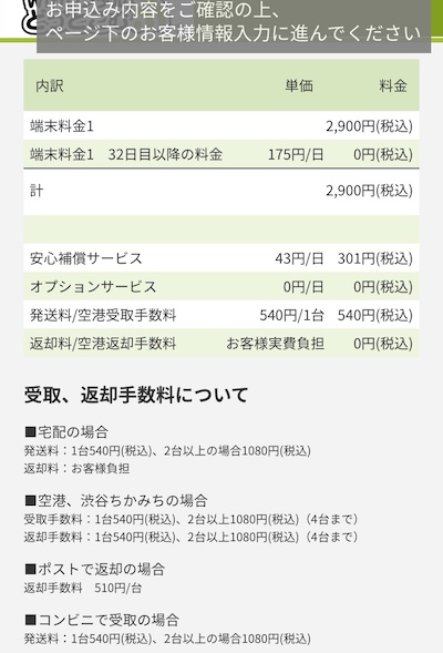また、WiFiレンタルどっとこむは安心保証サービスが1日43円(税込)というのも嬉しいところ。