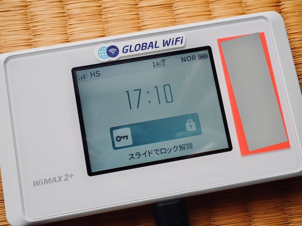 (写真では隠していますが)ルーターのディスプレイ横に赤いシールが貼ってあり、ここにパスワードも記載されています。
