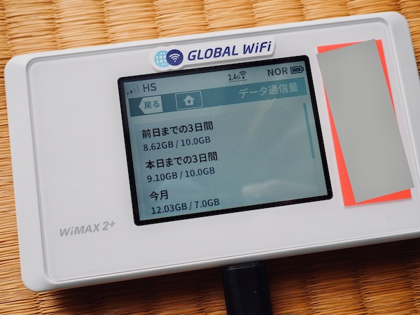レンタルしたのは「WiMAX WX05 無制限」で3日10GB利用で翌日速度制限ありです。(*現在のものは「WiMAX WX06 無制限」)